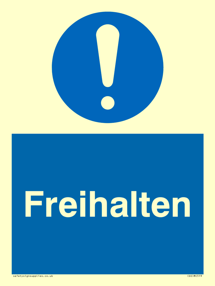 This sign contains a general Mandatory Exclamation Symbol - exclamation mark in white on blue circle background.