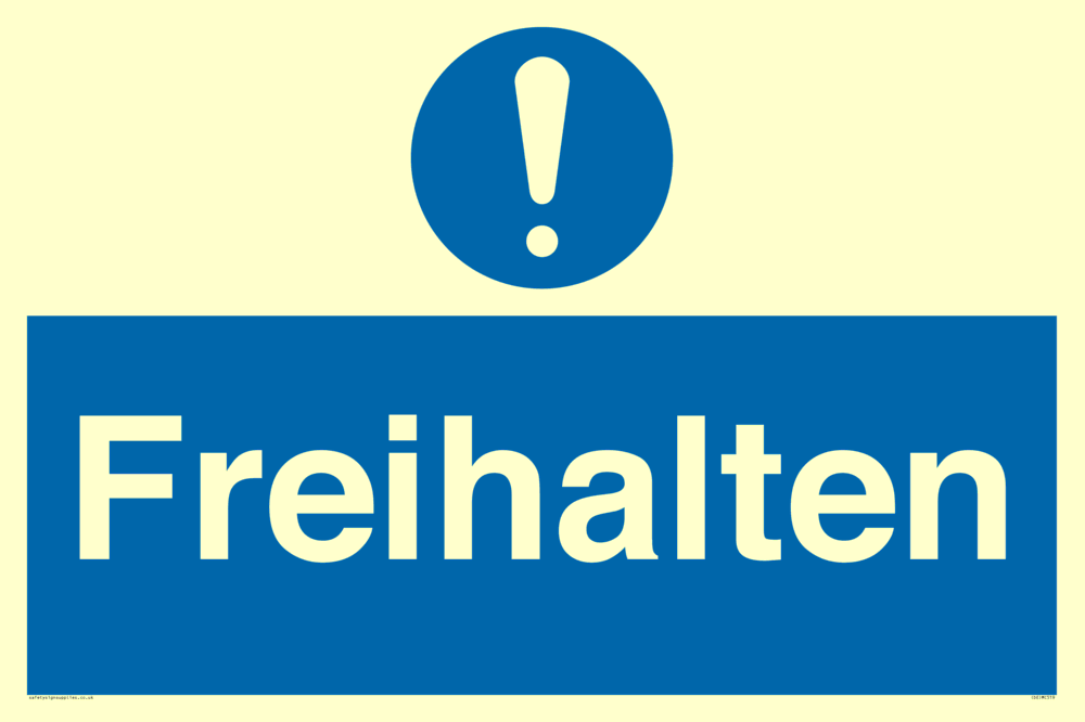 This sign contains a general Mandatory Exclamation Symbol - exclamation mark in white on blue circle background.