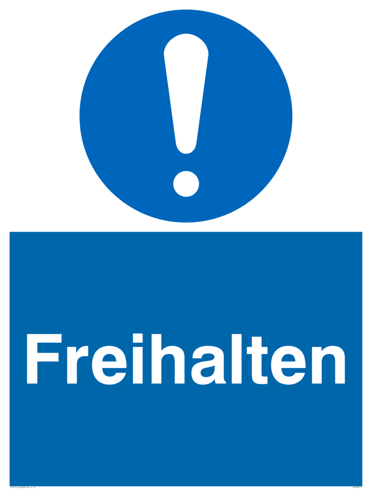 This sign contains a general Mandatory Exclamation Symbol - exclamation mark in white on blue circle background.
