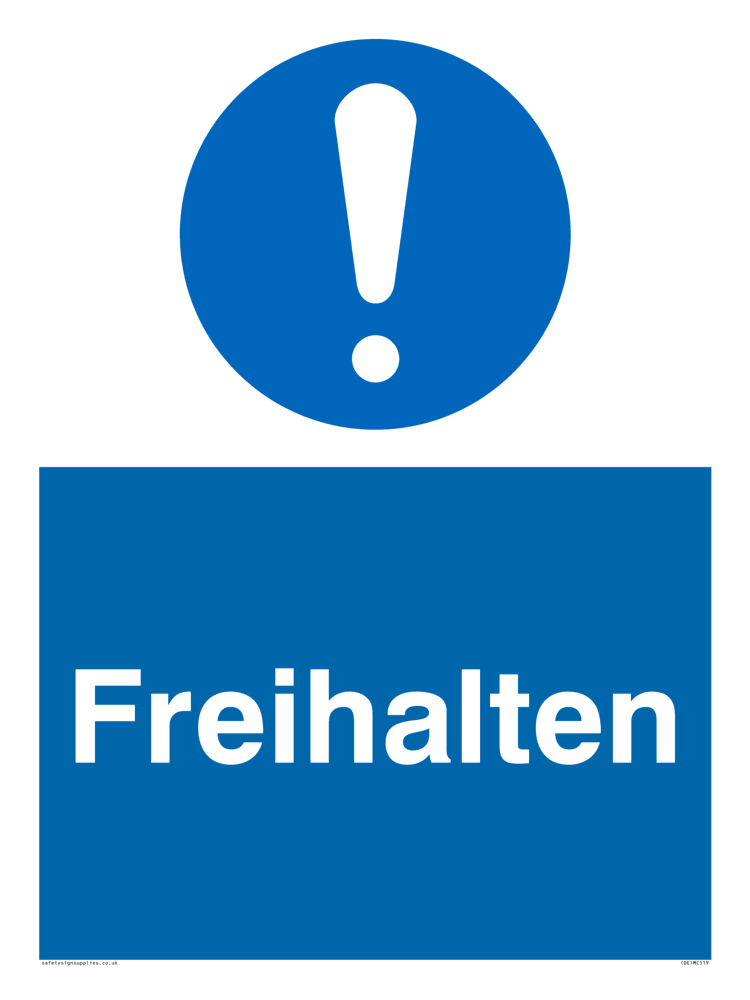 This sign contains a general Mandatory Exclamation Symbol - exclamation mark in white on blue circle background.