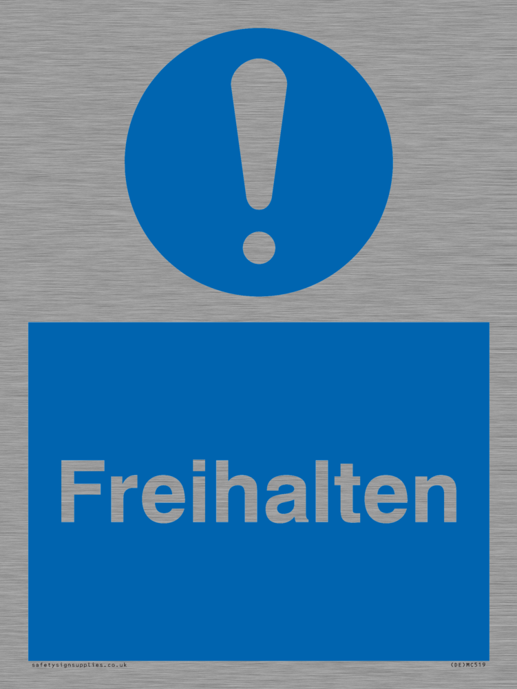 This sign contains a general Mandatory Exclamation Symbol - exclamation mark in white on blue circle background.