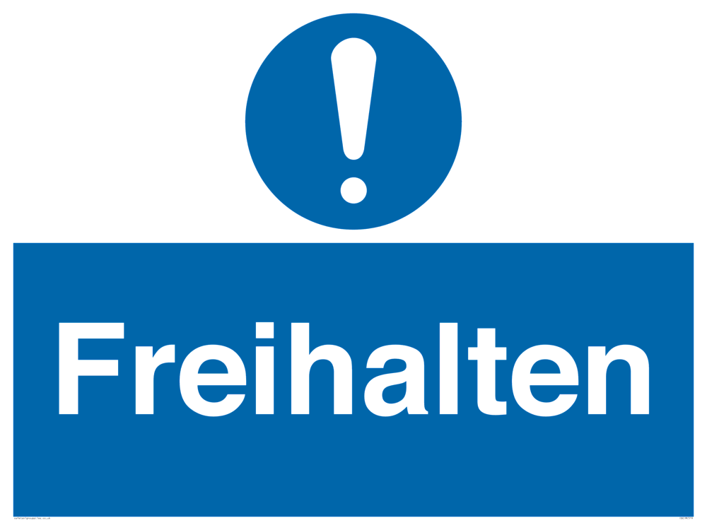 This sign contains a general Mandatory Exclamation Symbol - exclamation mark in white on blue circle background.