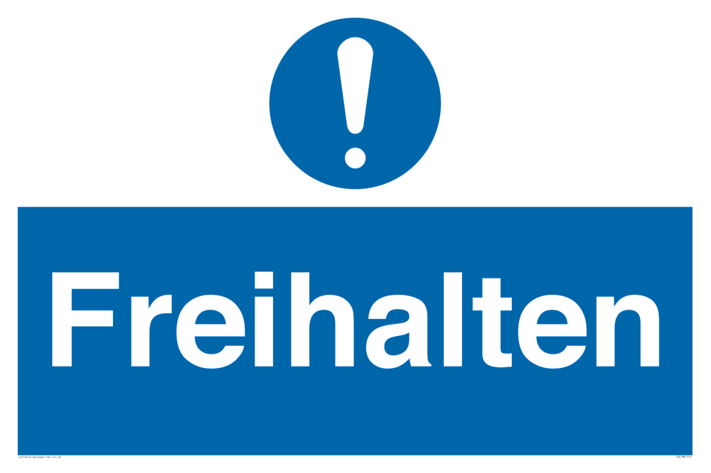 This sign contains a general Mandatory Exclamation Symbol - exclamation mark in white on blue circle background.