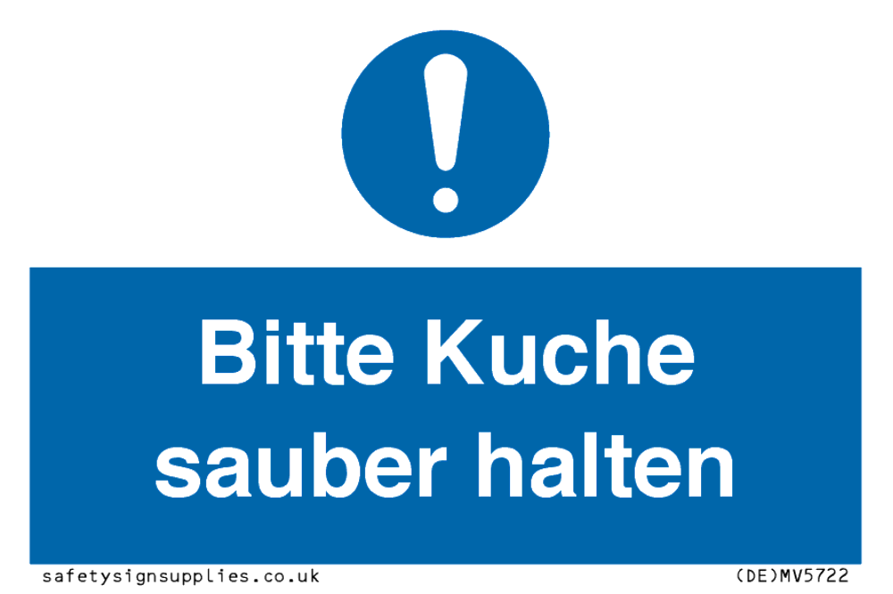 This sign contains a general Mandatory Exclamation Symbol - exclamation mark in white on blue circle background.