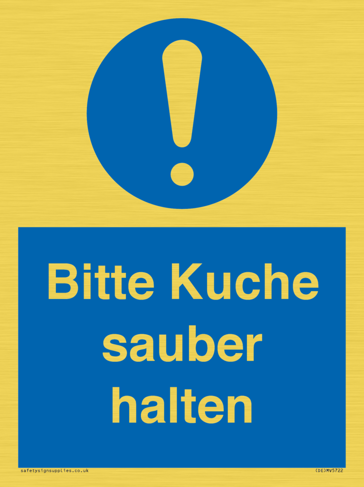 This sign contains a general Mandatory Exclamation Symbol - exclamation mark in white on blue circle background.