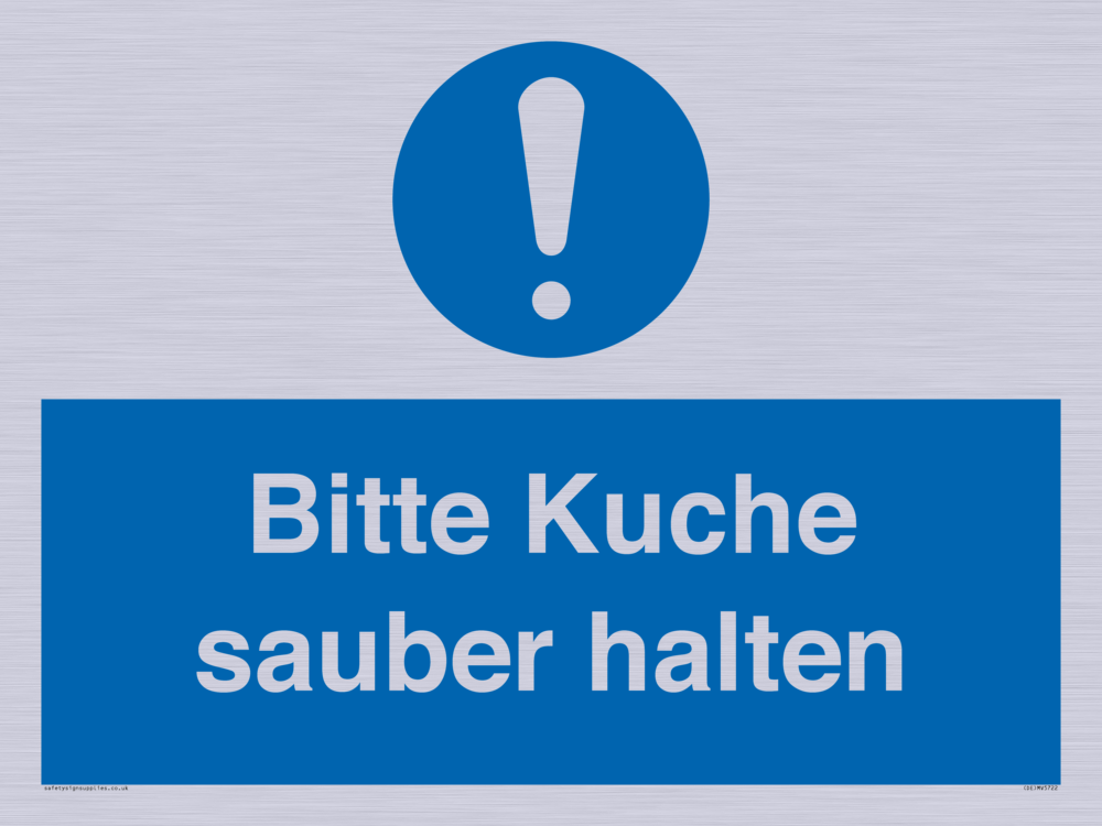 This sign contains a general Mandatory Exclamation Symbol - exclamation mark in white on blue circle background.