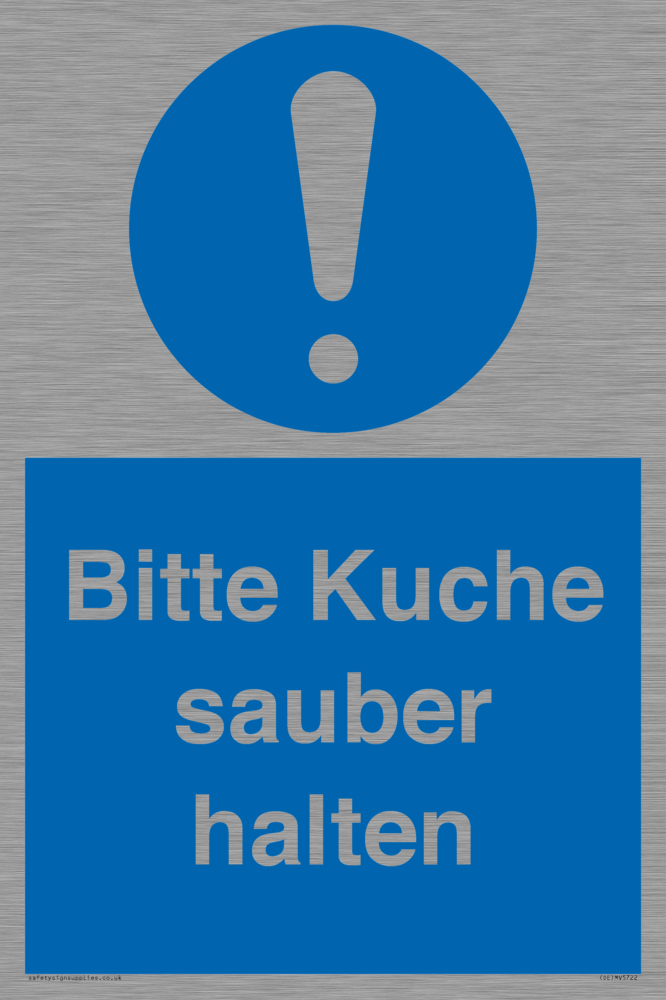 This sign contains a general Mandatory Exclamation Symbol - exclamation mark in white on blue circle background.