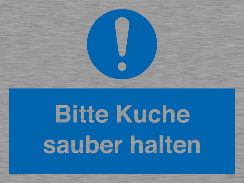 This sign contains a general Mandatory Exclamation Symbol - exclamation mark in white on blue circle background.