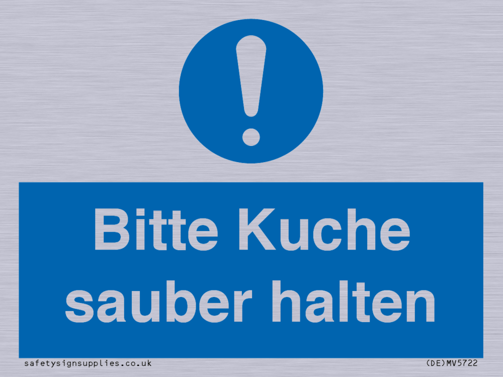 This sign contains a general Mandatory Exclamation Symbol - exclamation mark in white on blue circle background.