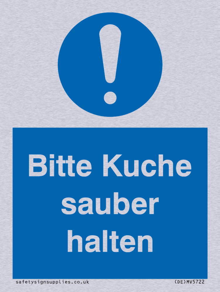 This sign contains a general Mandatory Exclamation Symbol - exclamation mark in white on blue circle background.
