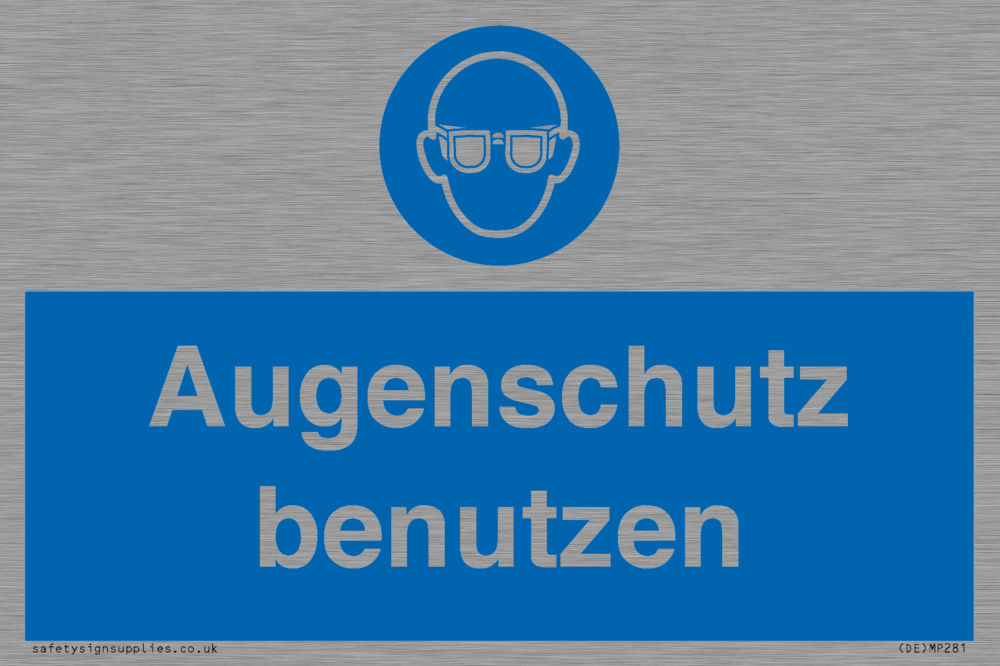 This sign contains an eye protection required symbol - person wearing safety glasses in white within blue circle. Suitable for fixing with screws. Suitable for hanging with a premium hanging kit.