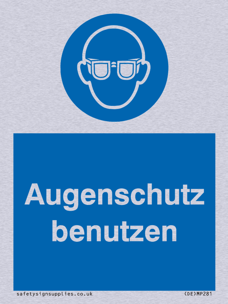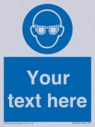This sign contains an eye protection required symbol - person wearing safety glasses in white within blue circle. Suitable for fixing with screws. Suitable for hanging with a premium hanging kit.