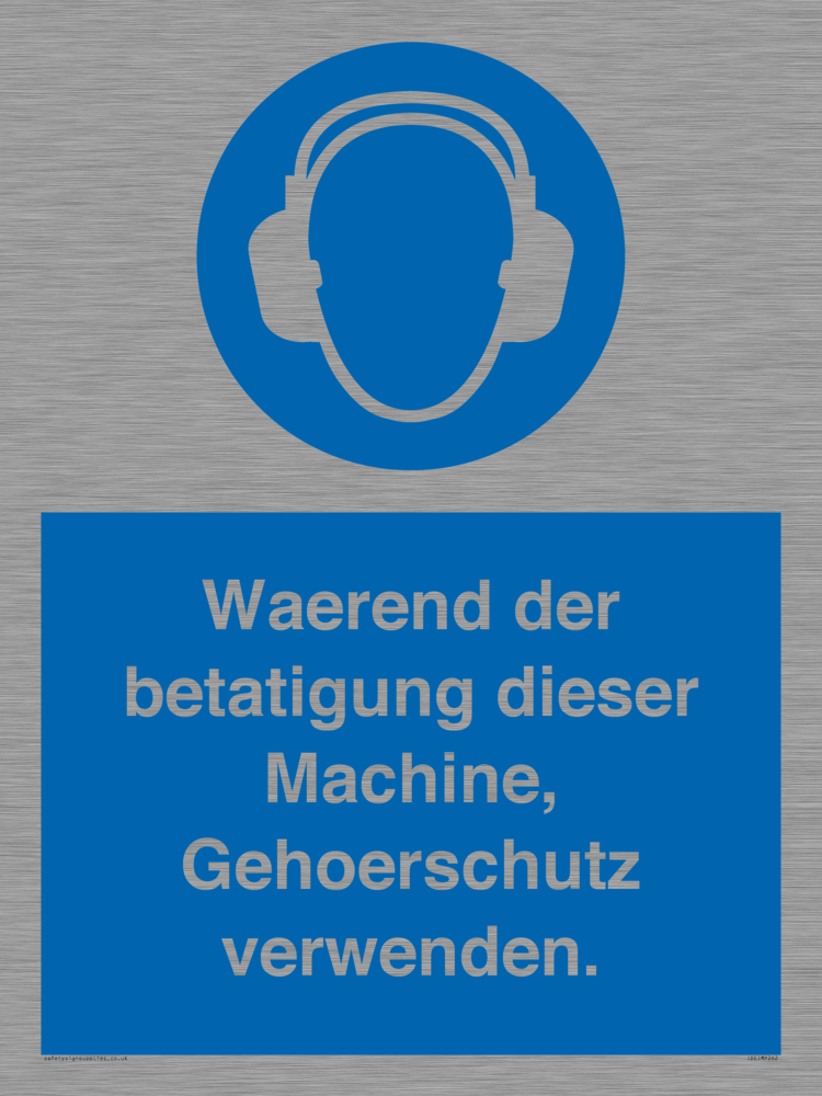 Sign Text: Waerend der betatigung dieser Machine, Gehoerschutz verwenden.