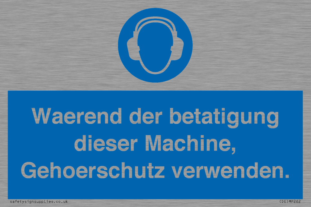 Sign Text: Waerend der betatigung dieser Machine, Gehoerschutz verwenden.