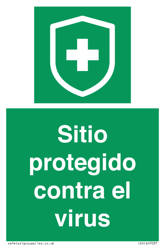 Sign Text: Sitio protegido contra el virus