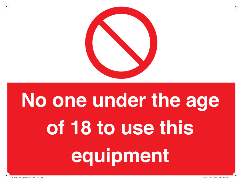 No one under the age of 18 to use this equipment Sign