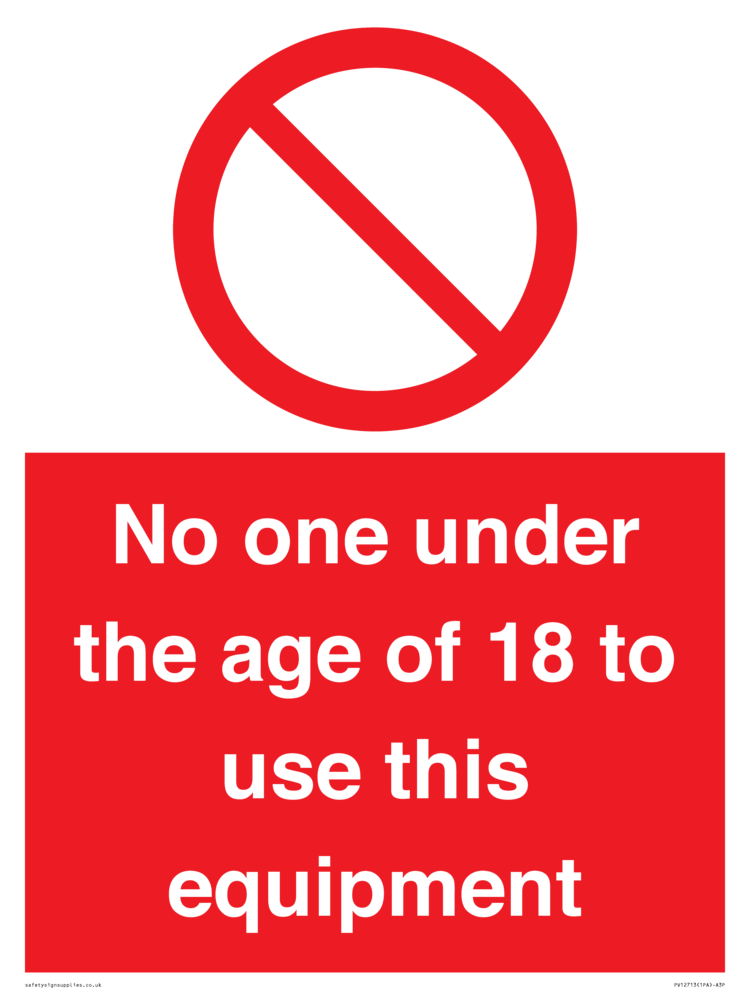 No one under the age of 18 to use this equipment Sign