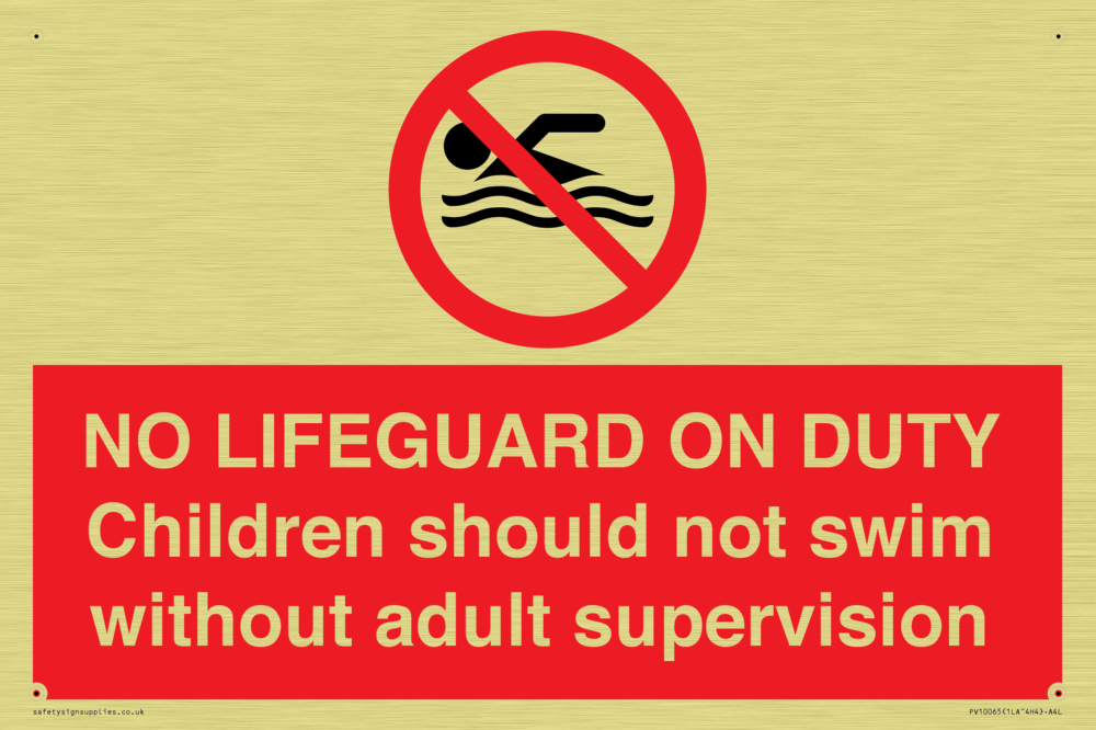 Sign Text: NO LIFEGUARD ON DUTY Children should not swim without adult supervision