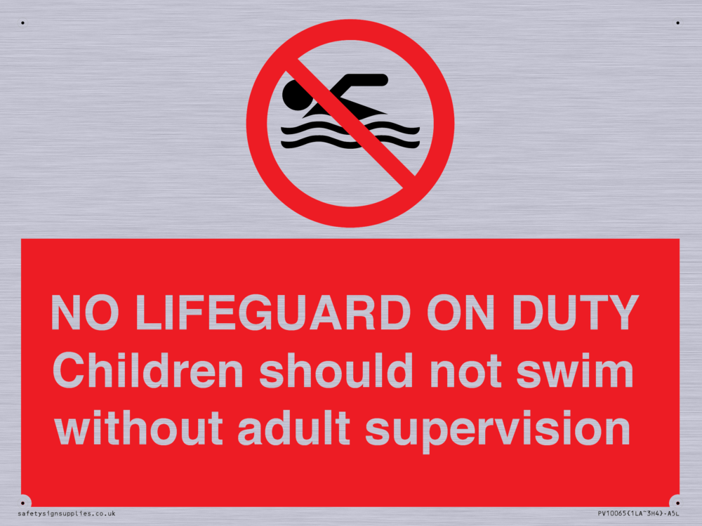 Sign Text: NO LIFEGUARD ON DUTY Children should not swim without adult supervision