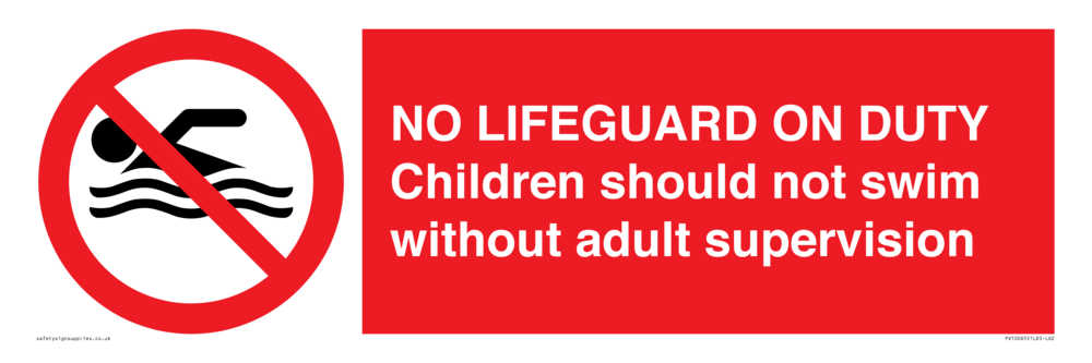 Sign Text: NO LIFEGUARD ON DUTY Children should not swim without adult supervision