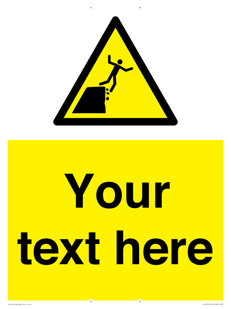 Custom Warning unstable cliff edge Sign