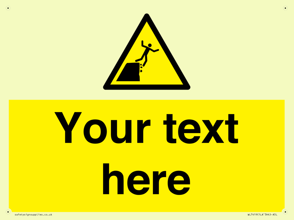 Custom Warning unstable cliff edge Sign