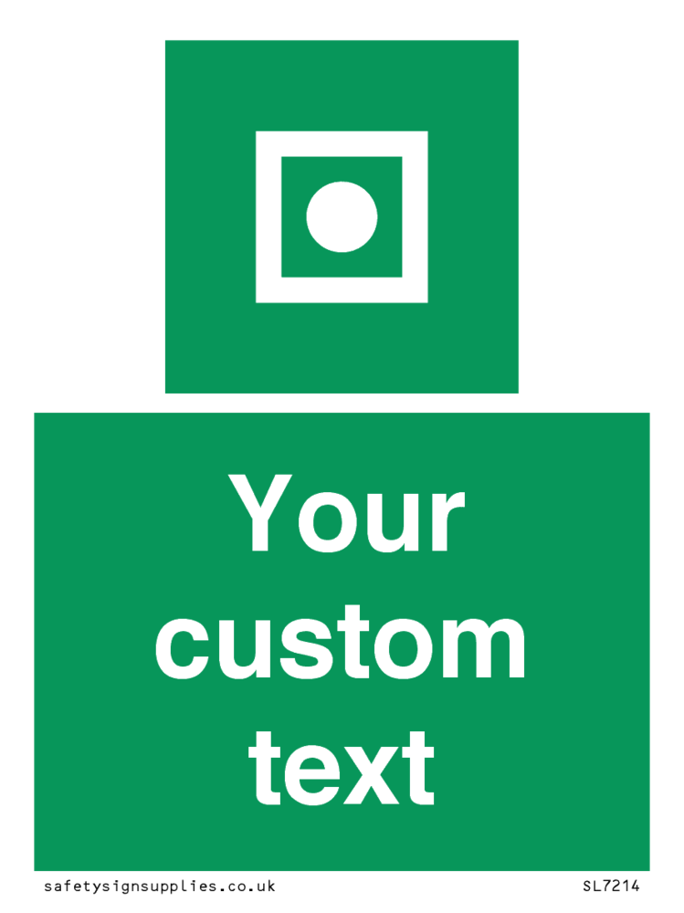 Suitable for mounting on a flat surface. Suitable for mounting on a door. Suitable for mounting on cladding. This product is design to be mounted on the ceiling. Custom signs contain the text required by the customer. With your your text and a standard safety sign symbol - a bespoke sign can fit any requirement.