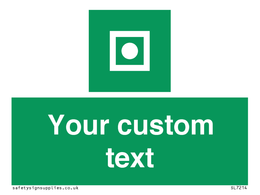 Suitable for mounting on a flat surface. Suitable for mounting on a door. Suitable for mounting on cladding. This product is design to be mounted on the ceiling. Custom signs contain the text required by the customer. With your your text and a standard safety sign symbol - a bespoke sign can fit any requirement.
