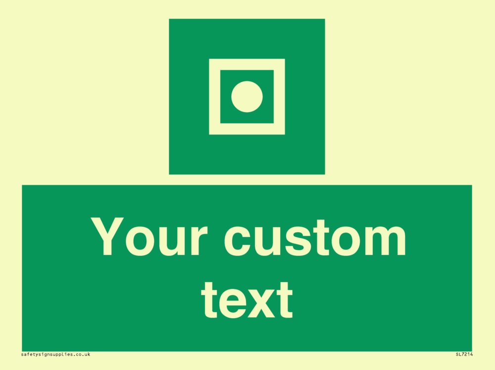 Suitable for mounting on a door. Suitable for mounting on cladding. This product is design to be mounted on the ceiling. Custom signs contain the text required by the customer. With your your text and a standard safety sign symbol - a bespoke sign can fit any requirement.
