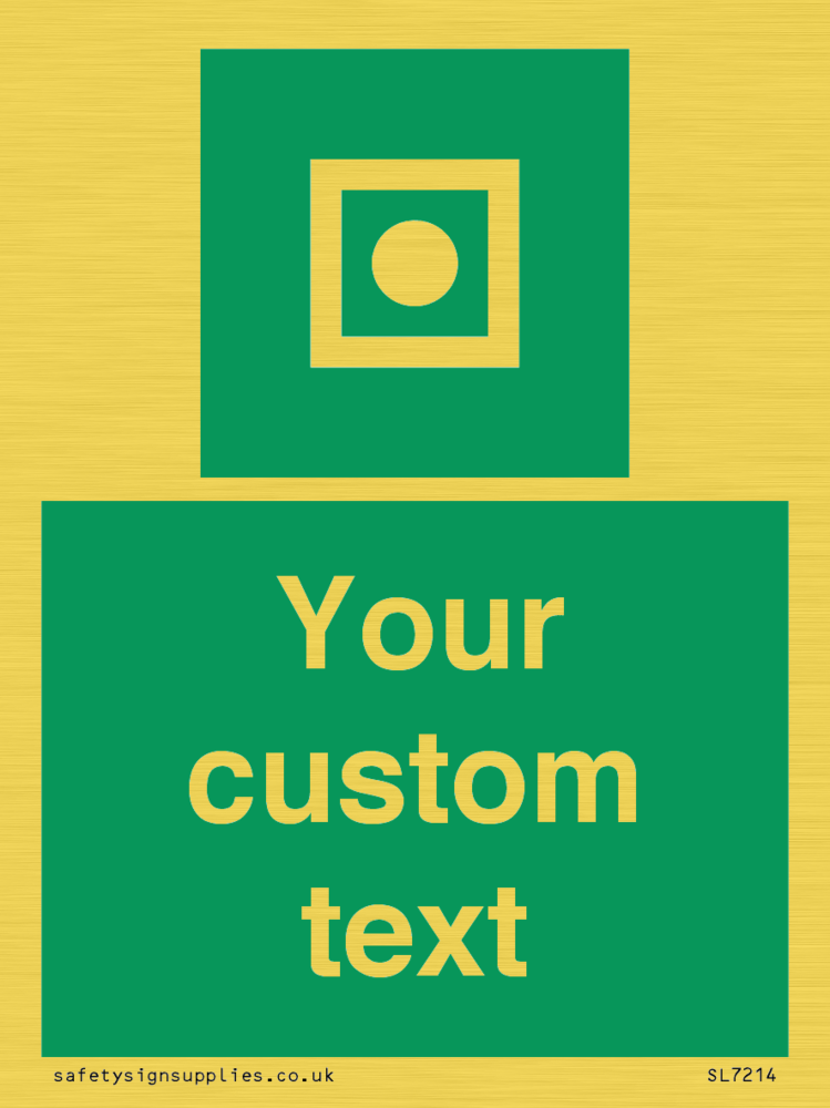 Suitable for hanging installation. Suitable for mounting on a flat surface. Suitable for mounting on a door. Custom signs contain the text required by the customer. With your your text and a standard safety sign symbol - a bespoke sign can fit any requirement. Signs in this range are from our maximum choice range. Giving you the most choice of signs available in the UK.