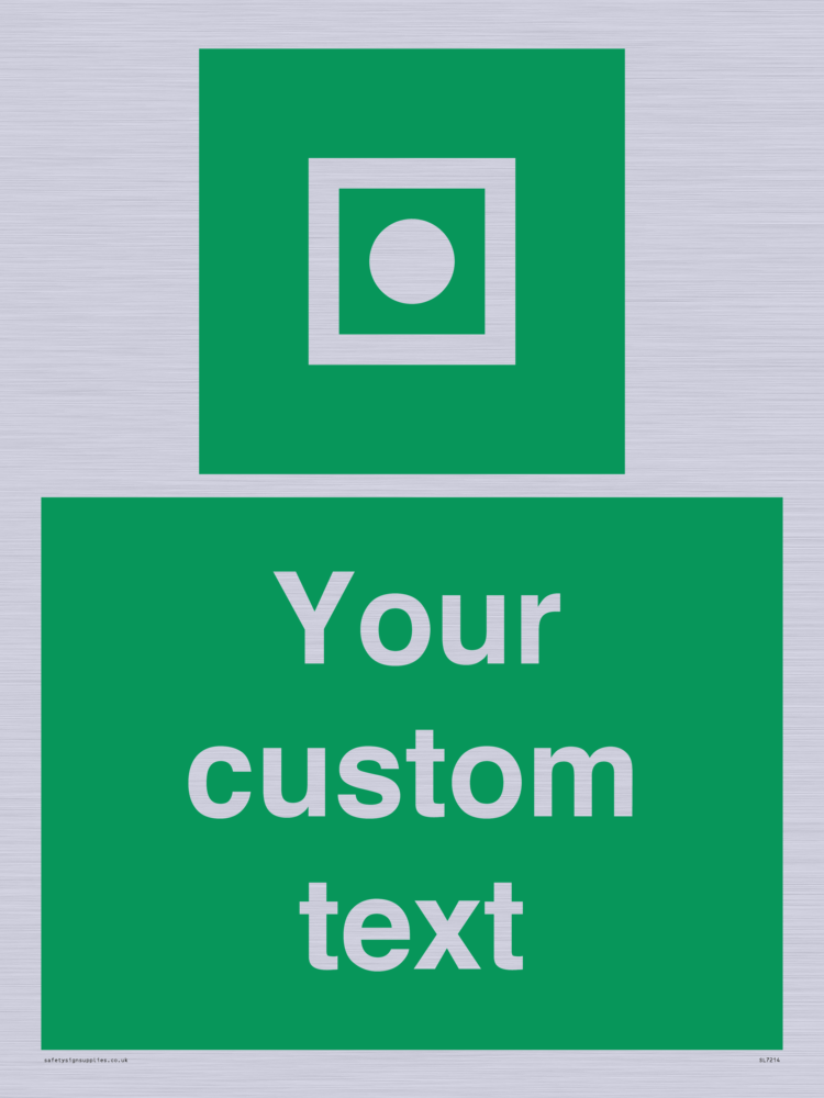 Suitable for hanging installation. Suitable for mounting on a flat surface. Suitable for mounting on a door. Custom signs contain the text required by the customer. With your your text and a standard safety sign symbol - a bespoke sign can fit any requirement. Signs in this range are from our maximum choice range. Giving you the most choice of signs available in the UK.