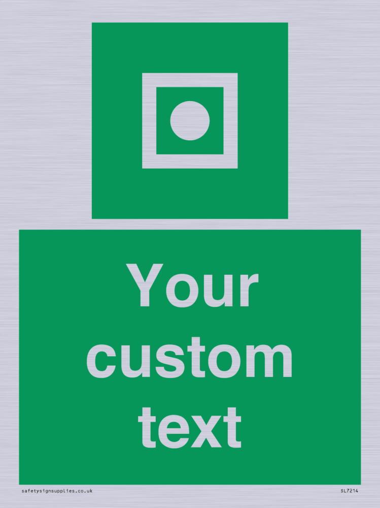 Suitable for hanging installation. Suitable for mounting on a flat surface. Suitable for mounting on a door. Custom signs contain the text required by the customer. With your your text and a standard safety sign symbol - a bespoke sign can fit any requirement. Signs in this range are from our maximum choice range. Giving you the most choice of signs available in the UK.