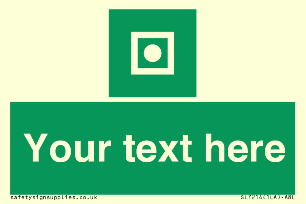 Sign Text: Your custom text Dimensions: 75x50mm Material: Vinyl Photoluminescent sticker Orientation: Landscape Text Colour: White Background Colour: Green More...