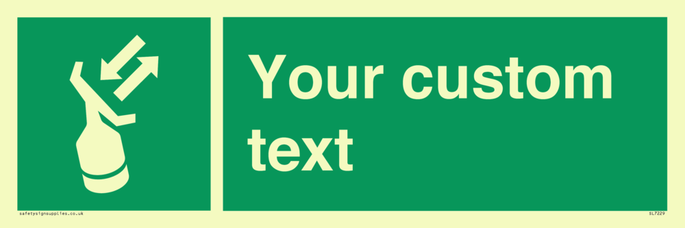 Suitable for mounting on a door. Suitable for mounting on cladding. This product is design to be mounted on the ceiling. Custom signs contain the text required by the customer. With your your text and a standard safety sign symbol - a bespoke sign can fit any requirement.