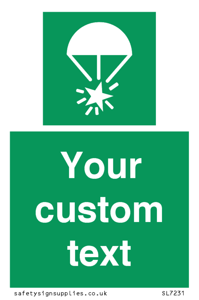 Suitable for mounting on a door. Suitable for mounting on cladding. This product is design to be mounted on the ceiling. Custom signs contain the text required by the customer. With your your text and a standard safety sign symbol - a bespoke sign can fit any requirement. Signs in this range are from our maximum choice range. Giving you the most choice of signs available in the UK.