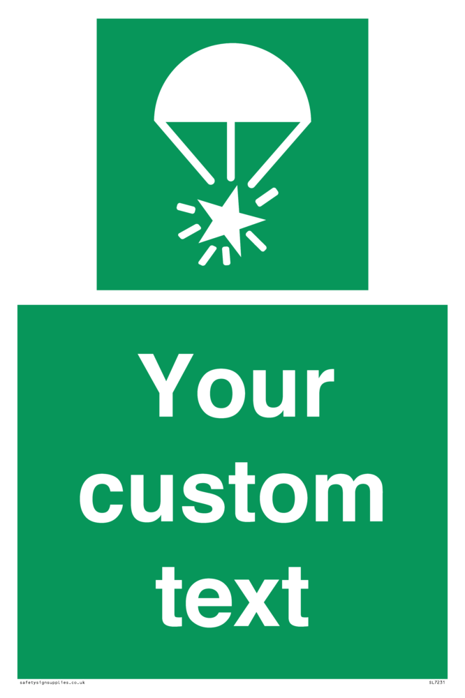Suitable for mounting on a flat surface. Suitable for mounting on a door. Suitable for mounting on cladding. This product is design to be mounted on the ceiling. Custom signs contain the text required by the customer. With your your text and a standard safety sign symbol - a bespoke sign can fit any requirement.