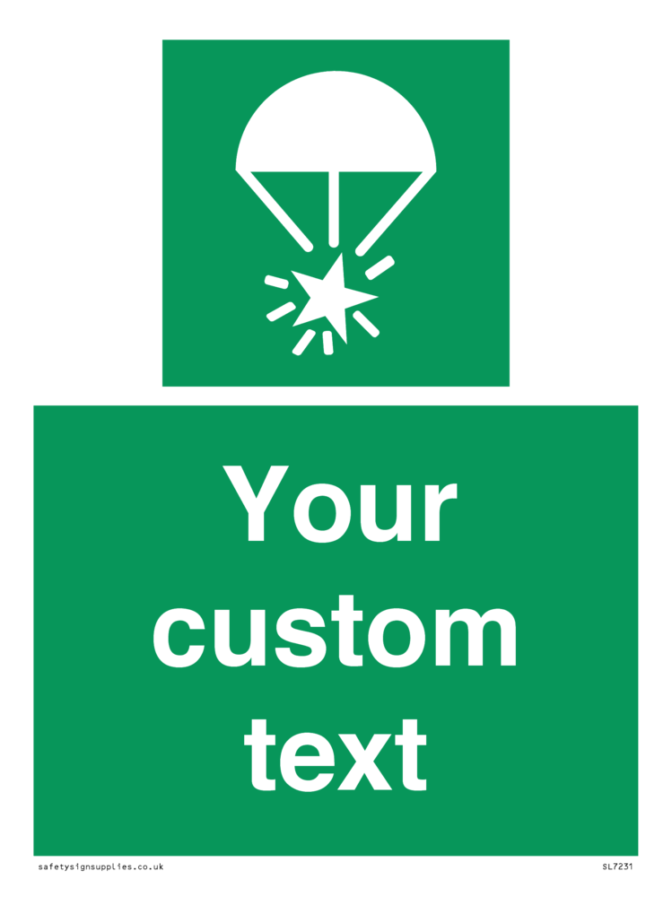 Suitable for mounting on a flat surface. Suitable for mounting on a door. Suitable for mounting on cladding. This product is design to be mounted on the ceiling. Custom signs contain the text required by the customer. With your your text and a standard safety sign symbol - a bespoke sign can fit any requirement.