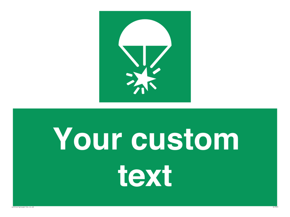 Suitable for mounting on a flat surface. Suitable for mounting on a door. Suitable for mounting on cladding. This product is design to be mounted on the ceiling. Custom signs contain the text required by the customer. With your your text and a standard safety sign symbol - a bespoke sign can fit any requirement.