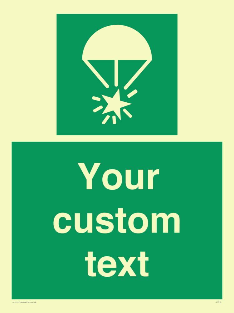Suitable for mounting on a door. Suitable for mounting on cladding. This product is design to be mounted on the ceiling. Custom signs contain the text required by the customer. With your your text and a standard safety sign symbol - a bespoke sign can fit any requirement.