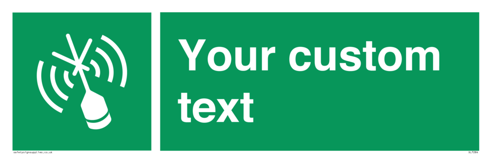 Suitable for mounting on a flat surface. Suitable for mounting on a door. Suitable for mounting on cladding. This product is design to be mounted on the ceiling. Custom signs contain the text required by the customer. With your your text and a standard safety sign symbol - a bespoke sign can fit any requirement.