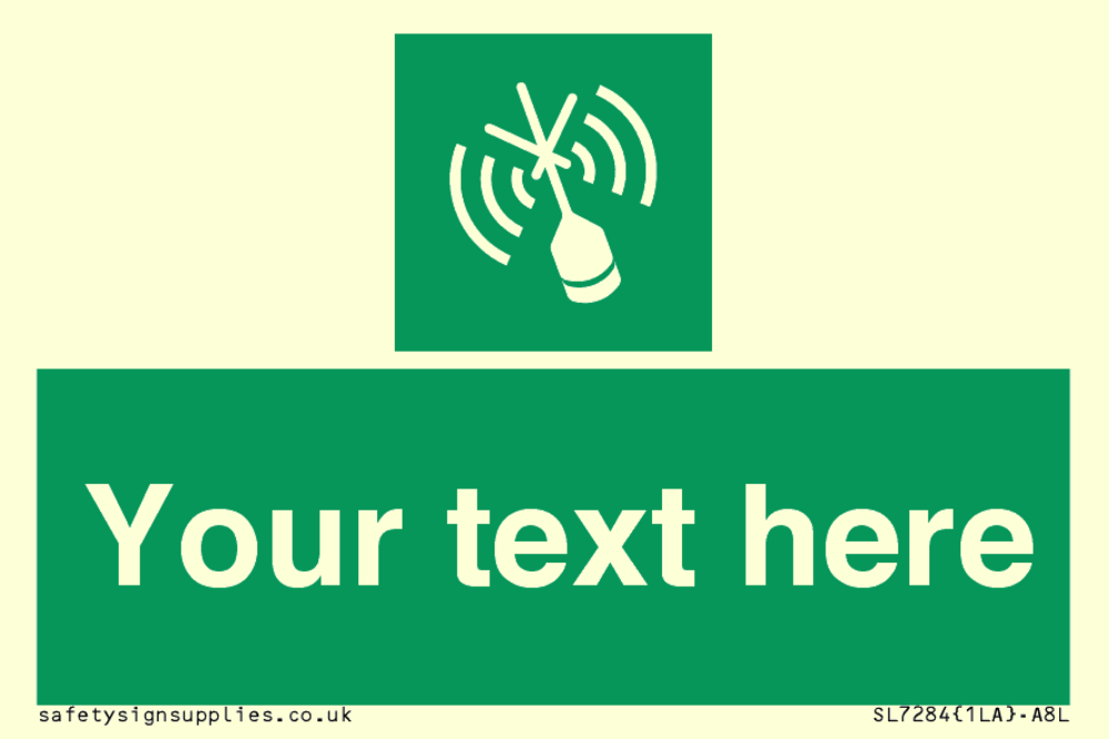 Thickness / Depth: 170microns Durability: 3-5 years Mounting Surface: flat Materials: Sticker Material Colour: Glow in the Dark Custom Text: Yes Language: ENGLISH Language (EN) Symbol: E052 : Emergency position indicating radio beacon Internal Layout: 1LA : 1 landscape pod in a Landscape Region: UK