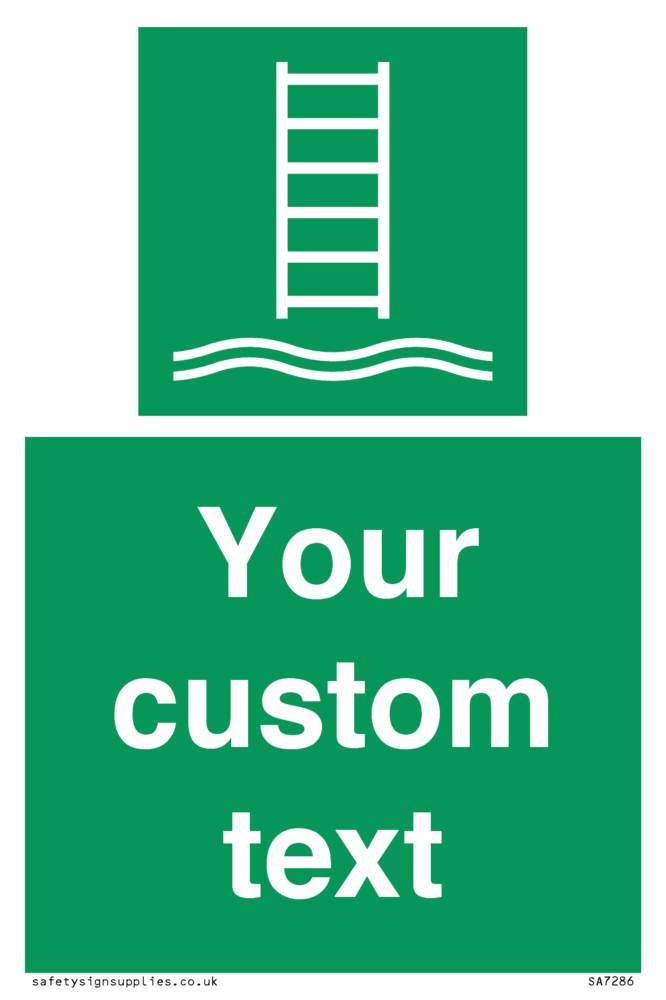 Suitable for mounting on a flat surface. Suitable for mounting on a door. Suitable for mounting on cladding. This product is design to be mounted on the ceiling. Custom signs contain the text required by the customer. With your your text and a standard safety sign symbol - a bespoke sign can fit any requirement.