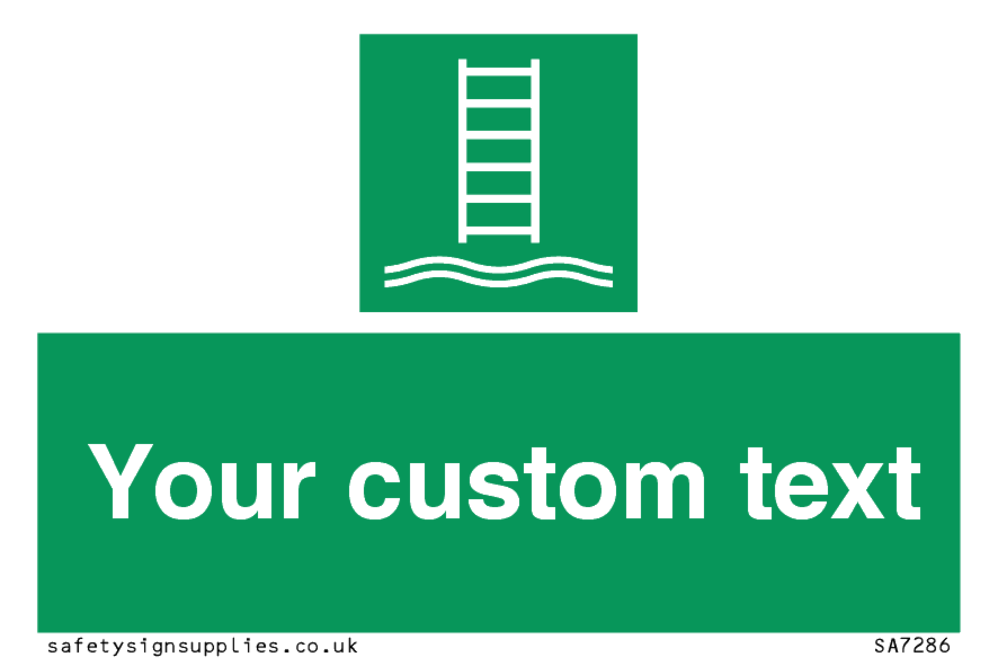 Suitable for mounting on a flat surface. Suitable for mounting on a door. Suitable for mounting on cladding. This product is design to be mounted on the ceiling. Custom signs contain the text required by the customer. With your your text and a standard safety sign symbol - a bespoke sign can fit any requirement.