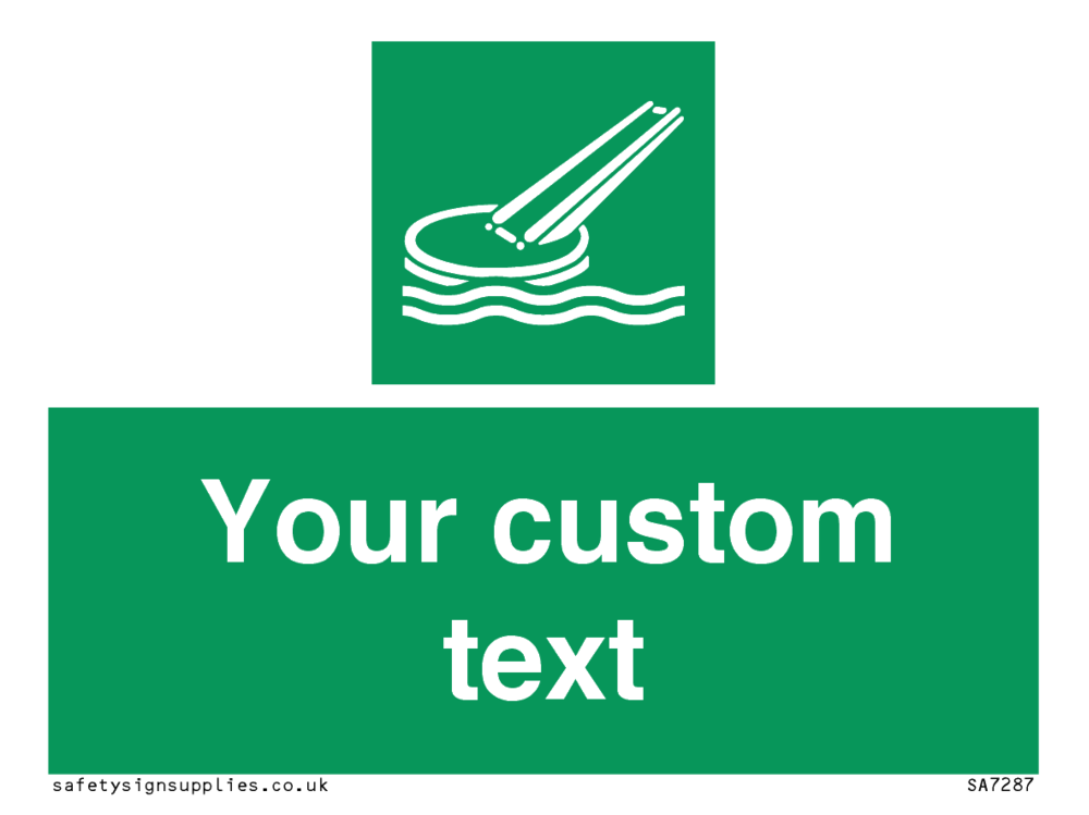 Suitable for mounting on a flat surface. Suitable for mounting on a door. Suitable for mounting on cladding. This product is design to be mounted on the ceiling. Custom signs contain the text required by the customer. With your your text and a standard safety sign symbol - a bespoke sign can fit any requirement.