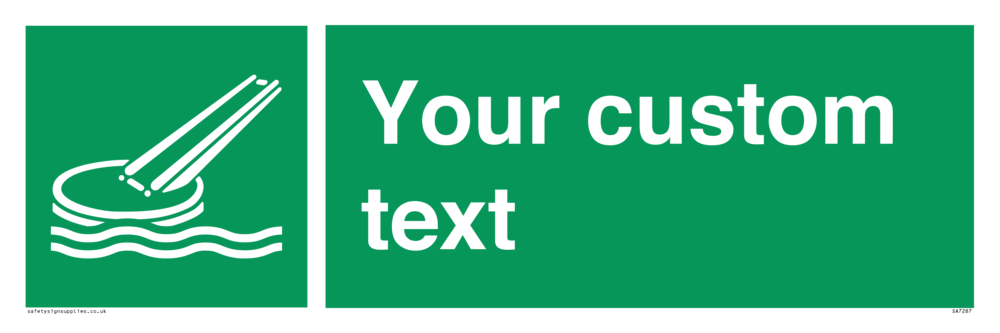 Suitable for mounting on a flat surface. Suitable for mounting on a door. Suitable for mounting on cladding. This product is design to be mounted on the ceiling. Custom signs contain the text required by the customer. With your your text and a standard safety sign symbol - a bespoke sign can fit any requirement.