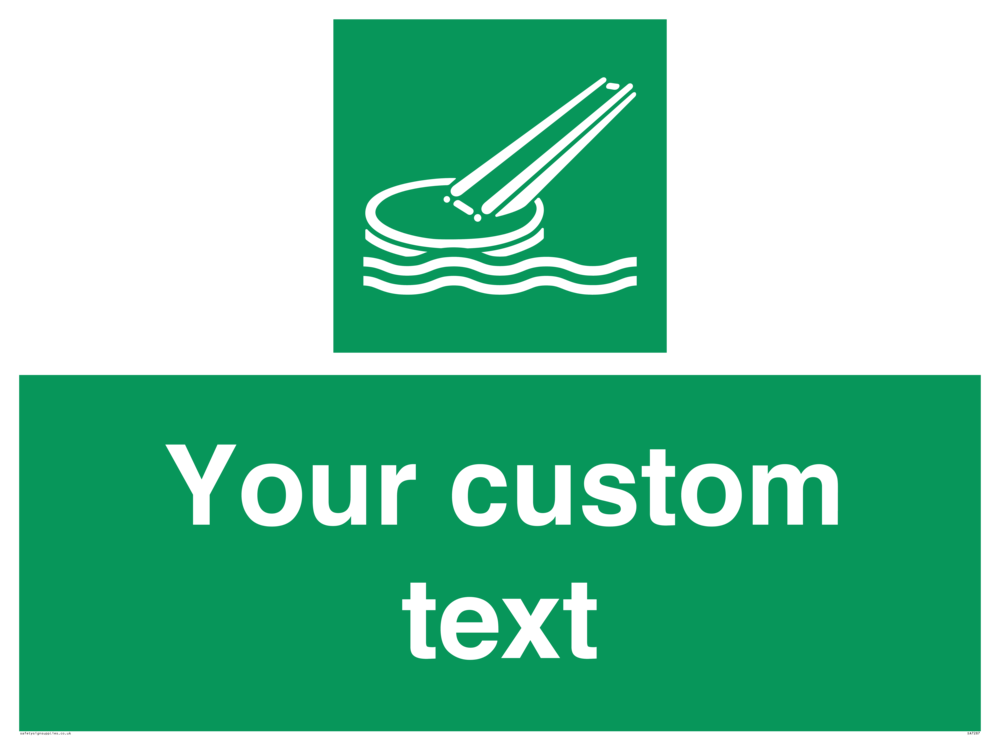 This product is design to be mounted on the ceiling. Custom signs contain the text required by the customer. With your your text and a standard safety sign symbol - a bespoke sign can fit any requirement.