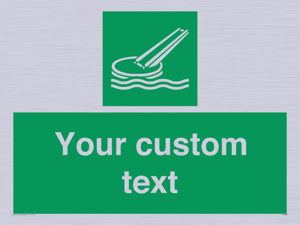 Suitable for hanging installation. Suitable for mounting on a flat surface. Suitable for mounting on a door. Custom signs contain the text required by the customer. With your your text and a standard safety sign symbol - a bespoke sign can fit any requirement.