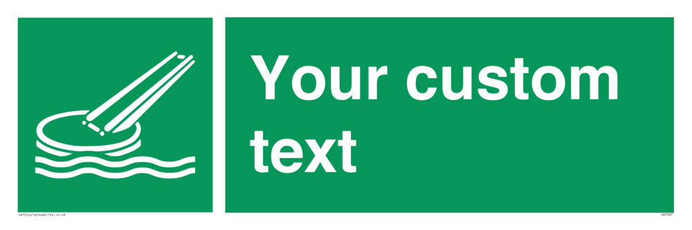 This product is design to be mounted on the ceiling. Custom signs contain the text required by the customer. With your your text and a standard safety sign symbol - a bespoke sign can fit any requirement.