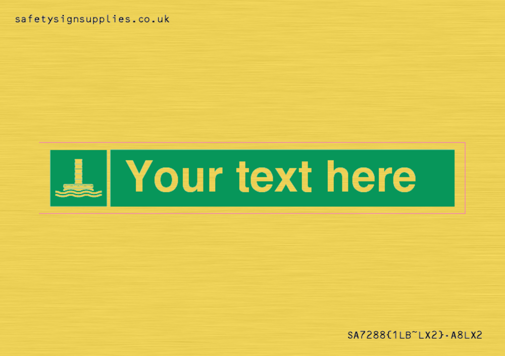 Durability: 3-5 years Mounting Surface: door Materials: Sticker Material Colour: Gold Custom Text: Yes Language: ENGLISH Language (EN) Symbol: E055 : Marine evacuation chute Internal Layout: 1LB : 1 letterbox pod in a Letterbox Cut Configuration: 60x10mm Rectangle(s) Region: UK