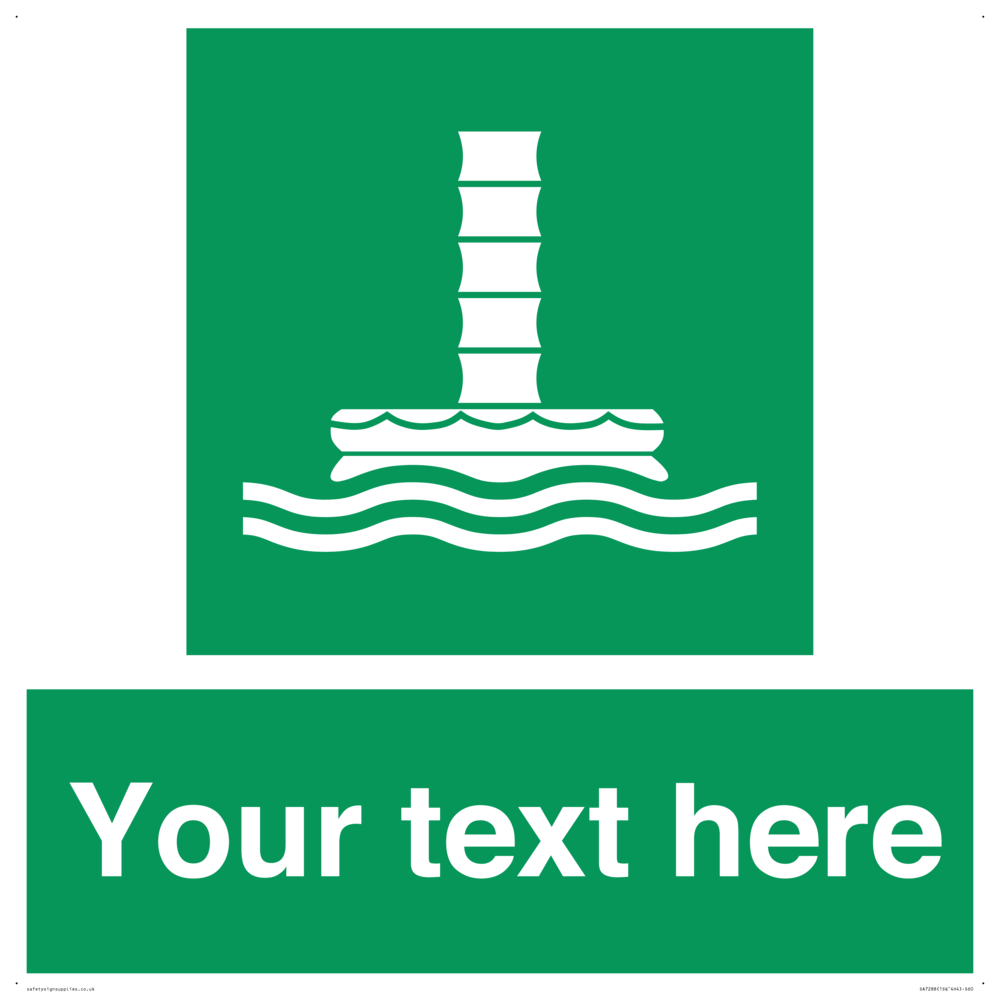 Image content: Chute, liferaft, two wavy lines.